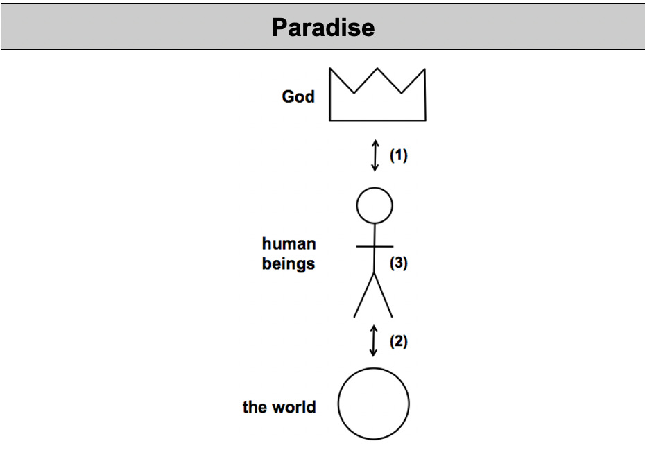 This picture of paradise provides the context for the rest of God’s revelation. The numbers in the diagram below correspond to the headings (1), (2) and (3) above.